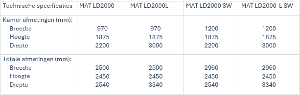 De MAT LD2000 is leverbaar als enkel- en dubbeldeurs met elektrische verwarming of stoom.